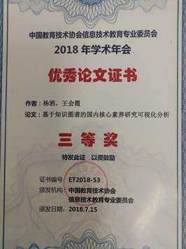 2017级研究生杨洒获中国教育技术协会信息技术教育专业委员会优秀论文奖