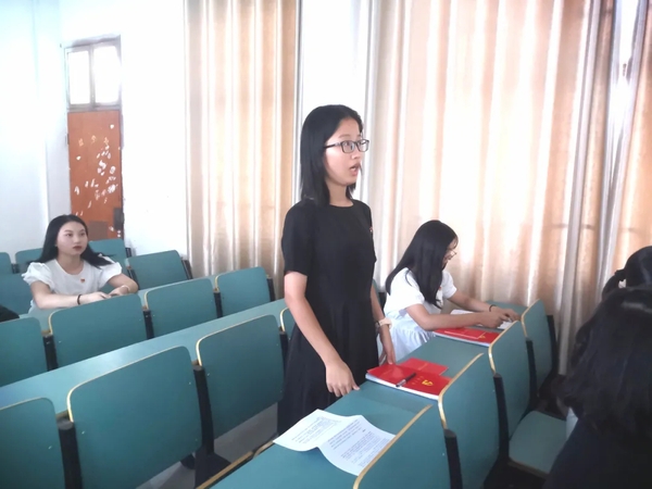 会议伊始,与会党员一起重温入党誓词并诵读党章,牢记党的宗旨和奋斗目标。朱婉婷、高朱洁、何佳、董自钰、张纯蕖、郭贞呈六位同志分别传达习近平总书记在西藏、河北承德考察时的重要讲话精神、第二十七次全国高校党的建设工作会议精神,认真学习习近平总书记重要文章《总结党的历史经验,加强党的政治建设》、中组部《关于在防汛救灾中充分发挥基层党组织战斗堡垒作用和广大党员先锋模范作用的通知》、《中共湖北省纪委关于6起违反中央八项规定精神问题典型案例的通报》,组织党员围绕“全面内战爆发和解放战争的胜利”“新生人民政权的巩固和社会主义制度的建立”开展党史专题学习。紧接着各与会党员围绕“作为大学生党员如何在实践中弘扬伟大建党精神、做新时代先锋力量”踊跃发表自己的见解。各党员纷纷表示要准备去自觉接受党组织的各种考验,还要用持之以恒的努力,在实践中主动锤炼自己,并在实践过程中,经常用党员的标准严格要求对照自己,既注重点滴小事,又经得起重大事件的考验,充分发挥大学生党员高能力的先锋模范作用。